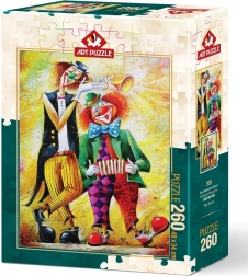 Un puzzle allegro con motivo clown del marchio ART PUZZLE offre 260 pezzi e, una volta assemblato, misura circa 34 × 48 cm. Inoltre, il produttore fornisce il servizio di invio del pezzo mancante – se il motivo è ancora disponibile e viene fornito il numero del lotto di produzione.