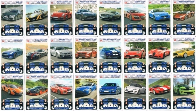 Divertente gioco di carte per bambini e adulti a tema auto sportive. Ogni carta contiene dati tecnici reali (cilindrata, numero di cilindri, peso, accelerazione 0–100 km/h, potenza e velocità massima). Il mazzo offre 32 carte suddivise in 8 quartetti – ideale per almeno 3 giocatori e avvincenti partite in famiglia.