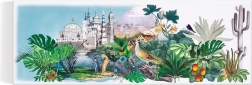 Questo puzzle a doppia faccia offre una splendida vista panoramica di un paesaggio ricco di edifici storici, vegetazione rigogliosa e creature fantastiche. Il design di Christian Lacroix è davvero unico e combina elementi naturali e architettonici.