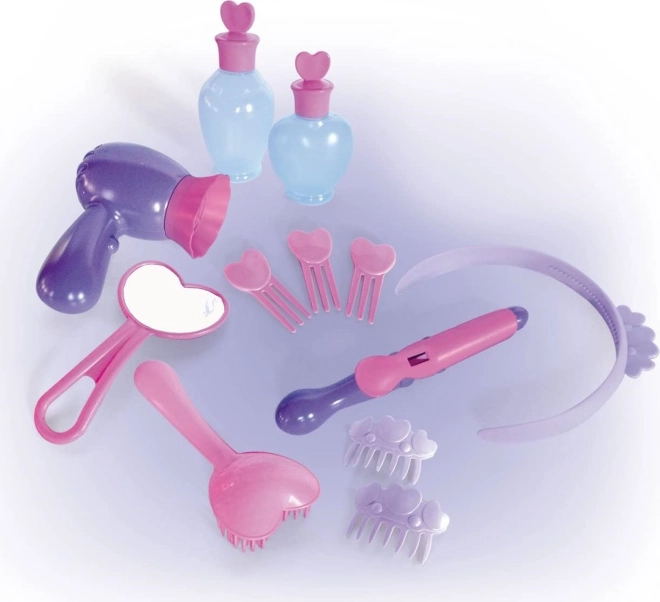 - 12 accessori – boccette, phon, cerchietto, mollette e altro per un gioco realistico.