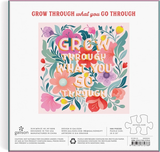 Rilassati con un puzzle di design: il puzzle quadrato GALISON “Grow Through What You Go Through” con 500 pezzi offre un motivo di stile, stampa di qualità e una guida inclusa per un montaggio confortevole. Il puzzle completato misura 50,8 × 50,8 cm – ideale da incorniciare.