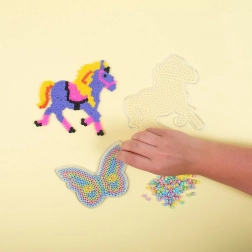 Le basi trasparenti PLAYBOX per perline da stirare facilitano la creazione creativa per bambini e adulti. La confezione contiene 2 forme – farfalla e cavallo, che permettono di comporre facilmente i motivi preferiti. Grazie al design trasparente è possibile inserire un modello sotto la base e copiarlo con precisione. Ideali per lo sviluppo della motricità fine, della pazienza e della fantasia.