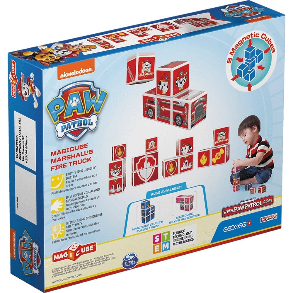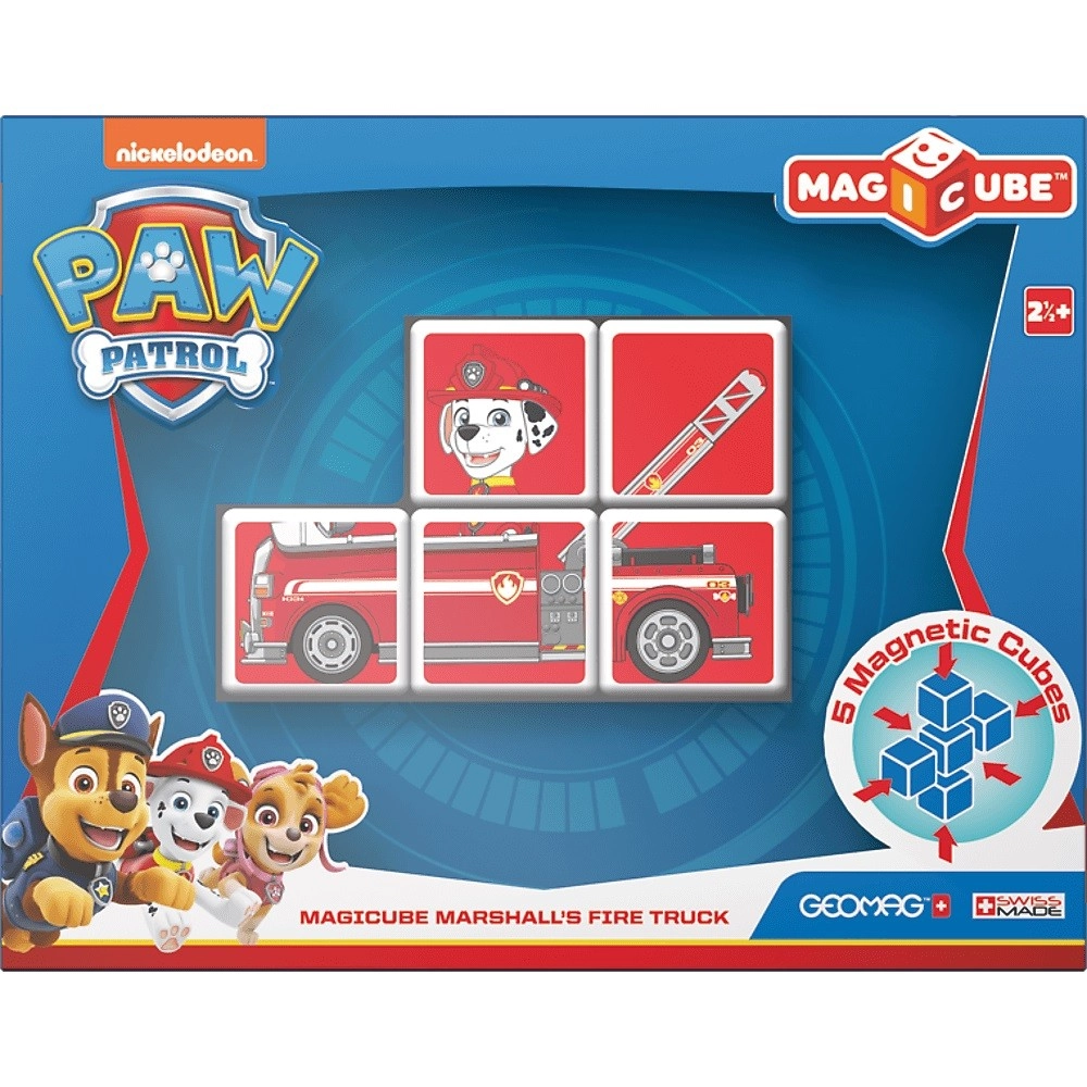Il set di cubi magnetici Geomag Magicube con il tema di MARSHALL di Paw Patrol offre un gioco di costruzione intuitivo per i bambini. Ogni cubo si aggancia grazie ai magneti da qualsiasi lato, rendendo la costruzione semplice, stabile e divertente. Colori vivaci e motivi come Marshall, camion dei pompieri, scudo fiammeggiante e zampetta invitano a comporre immagini e creare modelli 3D.
