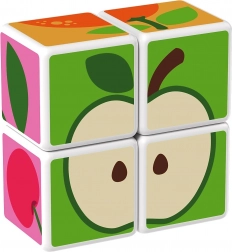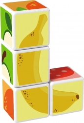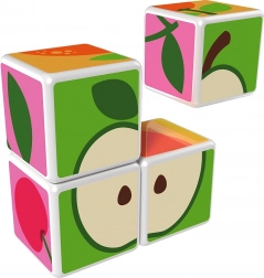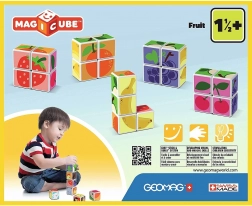 Cubi di plastica con motivi di frutta. I cubi sono magnetici, quindi i bambini possono assemblare oggetti tridimensionali. Possono costruire una mela, una fragola, un grappolo d’uva, ciliegie, una banana, una pesca oppure un comignolo o un recinto per gli animaletti. Ampliate le possibilità di gioco acquistando altri set GEOMAG Magicube. I cubi per bambini Magicube favoriscono la coordinazione e la motricità, sviluppano la fantasia e il pensiero logico e motivano alla narrazione di storie. La confezione contiene 4 cubi magnetici e 6 carte con proposte per costruire animali. Prodotto in Svizzera. video illustrativo dei cubi magnetici Geomag Magicube