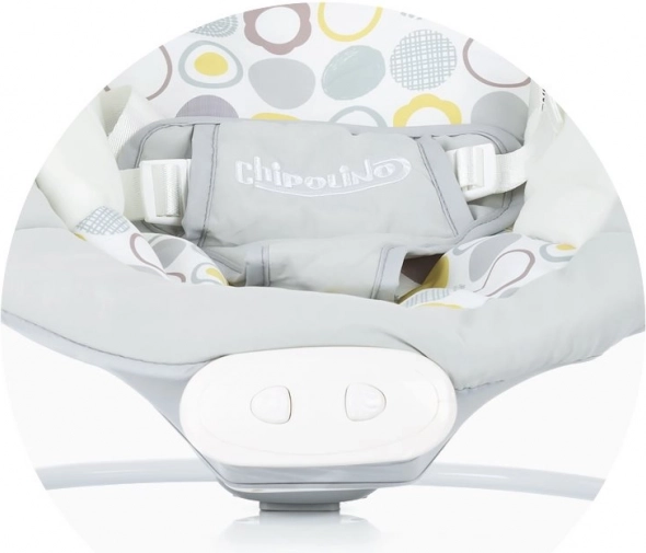 I pulsanti di controllo consentono di regolare le melodie e le vibrazioni. Il prodotto include anche il marchio Chipolino sulla cintura di sicurezza.