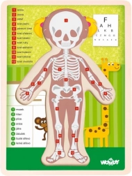 Questo puzzle bifacciale offre una visione unica del corpo umano attraverso una figura femminile con dodici pezzi. Da un lato sono raffigurati gli organi umani, mentre l'altro mostra la struttura dello scheletro umano. Assemblare questo puzzle aiuta il bambino a comprendere meglio come funziona il corpo umano: