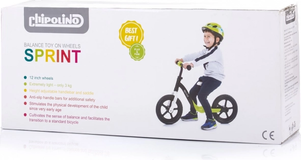 La leggera e stabile bicicletta senza pedali CHIPOLINO Sprint aiuta i bambini ad allenare in modo naturale equilibrio, coordinazione e senso della velocità. Grazie alle ruote da 12" con pneumatici pieni, alla sella e al manubrio regolabili e alle impugnature antiscivolo, i piccoli piloti godranno di una guida sicura e divertente. Inclusi anche un campanello e pratiche pedane per appoggiare i piedi durante la corsa.