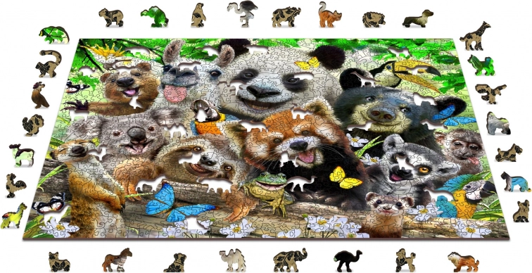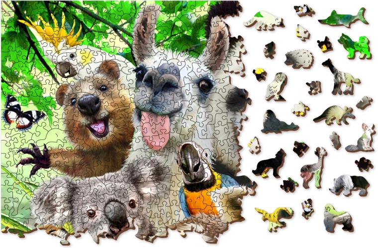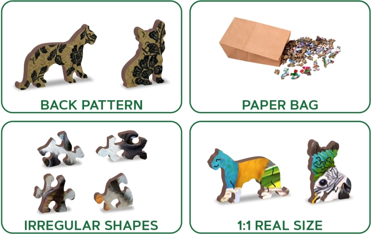Puzzle in legno Paradiso degli orsi 2v1 del marchio Wooden City è prodotto con enfasi sull'ecologia, testimoniato dall'assenza di confezioni in plastica. Ogni pezzo è tagliato al laser con precisione, ottenendo bordi lisci senza schegge. Grazie ai pezzi unicamente modellati che rappresentano animali e famosi edifici, il montaggio del puzzle diventa più divertente e al contempo impegnativo. Difficoltà maggiore si unisce al montaggio dal retro secondo la forma, mentre il fronte offre motivi tradizionali di bellissimi animali in ambienti naturali.