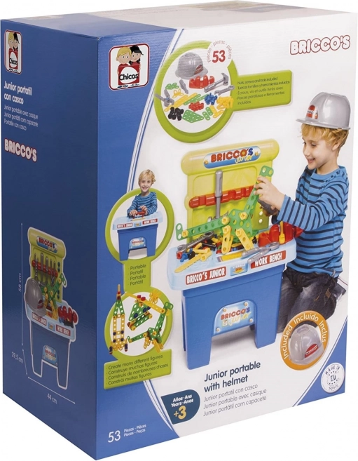 Scoprite il divertimento infinito con il tavolo da lavoro portatile, che offre ai bambini la possibilità di diventare piccoli artigiani. Questo set colorato include 53 pezzi, compreso un casco, che dona la giusta sensazione di lavoro. I bambini possono creare diverse costruzioni e imparare le basi della meccanica e della logica attraverso il gioco.