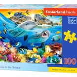 Goditi il montaggio di un bellissimo motivo con delfini in un paradiso tropicale. Questo puzzle di qualità con 100 pezzi offre divertimento e apprendimento: sviluppa concentrazione, pazienza e percezione di colori e forme. Una volta completato misura 40 × 29 cm e farà felici bambini e adulti.