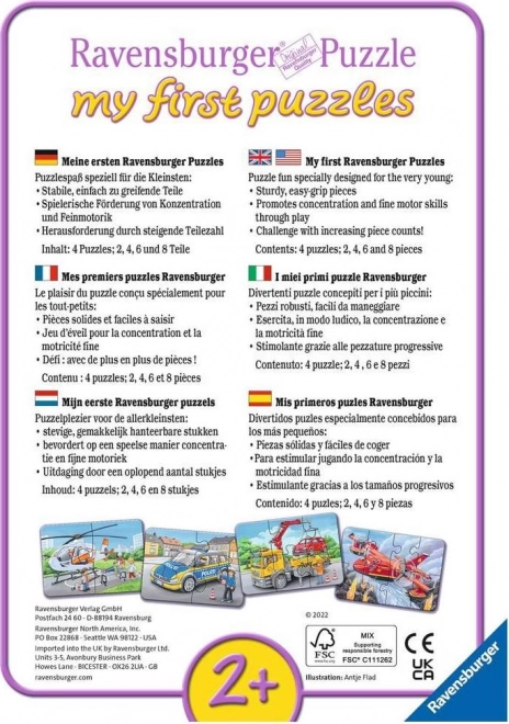 RAVENSBURGER I miei primi puzzle Veicoli di soccorso 4in1 (2,4,6,8 pezzi)
