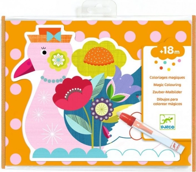 Scopri la magia senza disordine: basta riempire la penna inclusa con acqua e colorare le aree bianche sulle schede. Colori e motivi appaiono come per incanto e, asciugandosi, svaniscono, così i bambini possono ripetere il gioco all’infinito.