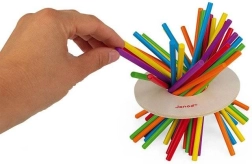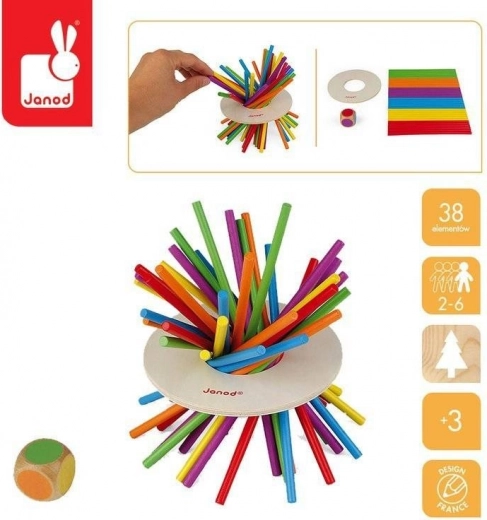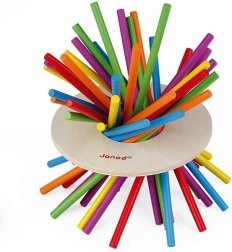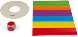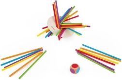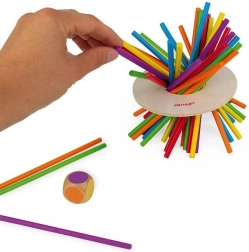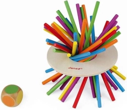 Gioco in stile Mikado! Come esercitare i colori e la motricità fine? Ti ricordi il Mikado? Un gioco per bambini per allenare il riconoscimento dei colori, l’abilità e le prime regole del gioco. Lancia il dado ed estrai un bastoncino dello stesso colore, in modo che il disco di legno non tocchi il tavolo. La confezione contiene 36 bastoncini colorati in legno, un disco di legno e un dado con i colori. Adatto ai bambini dai 3 anni in su.