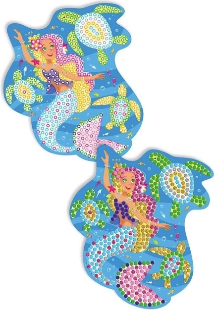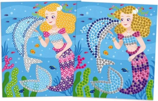 Set creativo per bambini dai 5 anni che sviluppa la motricità fine e l’immaginazione. Include 5 bellissime immagini di sirene e delfini e 10 fogli di adesivi scintillanti e colorati per creare mosaici. Incollaggio facile, motivi variopinti e divertimento duraturo a casa e in viaggio.