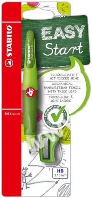 Matita ergonomica a scatto per bambini dai 5 anni, favorisce la corretta impugnatura e una scrittura confortevole. Forma ergonomica, impugnatura antiscivolo e mina HB da 3,15 mm infrangibile garantiscono una scrittura fluida senza affaticamento. Inclusi temperamatite ergonomico e possibilità di ricarica semplice delle mine per STABILO EASYergo 3,15.