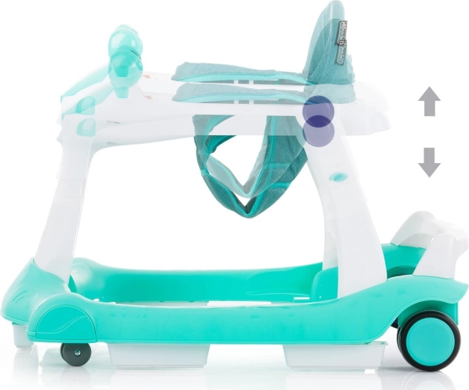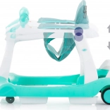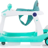 Girello multifunzionale 2 in 1 per bambini fino a 12 kg, sostiene i primi passi e sviluppa equilibrio e coordinazione. Offre una base ampia per la stabilità, 3 altezze del sedile, un pannello musicale per la stimolazione sensoriale e dispositivi di sicurezza tra cui 5 fermi e un meccanismo frenante sulle ruote posteriori in gomma. Si ripiega facilmente e rispetta la norma EN 1273.