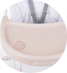 Il seggiolone Teddy di Chipolino unisce sicurezza, comfort e praticità. Grazie al sedile ampio e al poggiapiedi regolabile, il bambino è sempre a suo agio, mentre le cinture a 5 punti garantiscono stabilità durante i pasti. Il vassoio amovibile e spazioso facilita il servizio e la manutenzione.