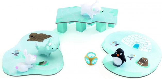 Il set include 4 pedine di animaletti finemente realizzate (pinguino, orso polare, volpe artica, coniglietto bianco), 3 plance di gioco a tema ghiaccio, elementi speciali come i fori di pesca, un ponte, la plancia dell’igloo e 6 pilastri. Grazie alle regole semplici e all’estetica accattivante, il gioco è ideale come prima esperienza cooperativa per i bambini in età prescolare.