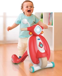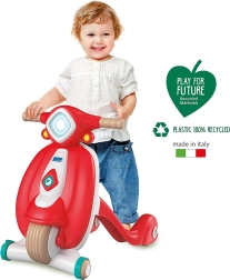 Elegante girello e cavalcabile per bambini ispirato all'iconica Vespa, aiuta i più piccoli nei primi passi e nell'allenamento dell'equilibrio. Presenta un design ergonomico, una struttura stabile e un pratico vano portaoggetti per piccoli giocattoli. Realizzato in plastica riciclata al 100%, è ecologico e ideale per bambini da 10 a 36 mesi.