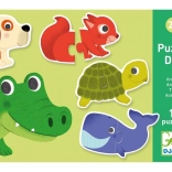 Djeco puzzle animaletti 10x2 pezzi è il primo puzzle ideale per bambini dai 2 anni. Ogni animaletto è composto da due pezzi grandi, chiari, colorati e facili da unire. I bambini allenano in modo naturale la coordinazione occhio–mano e imparano a riconoscere i diversi animali.