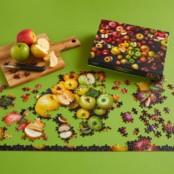 L'immagine del puzzle cattura una varietà vivace di tipi di mele, offrendo un'esperienza estetica durante la composizione.