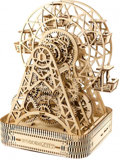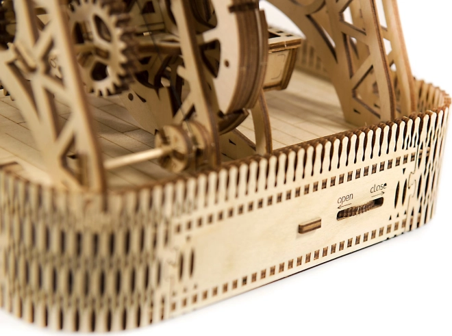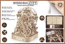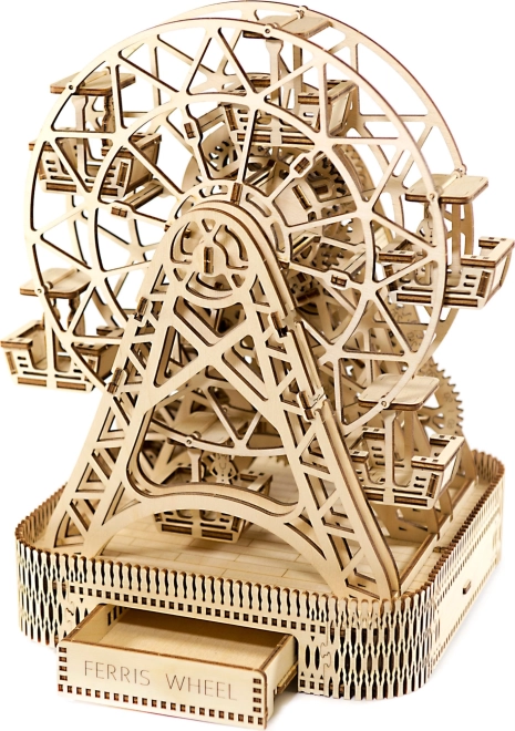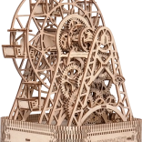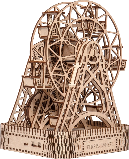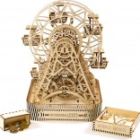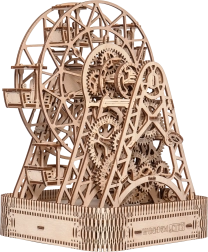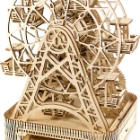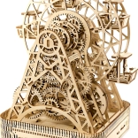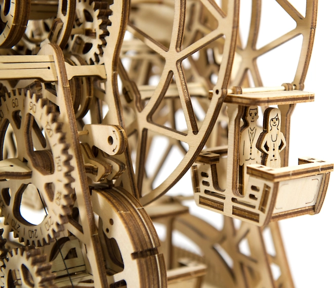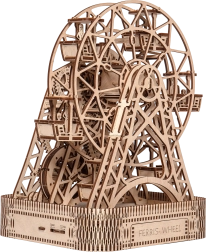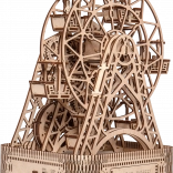Con una sola ricarica, la ruota gira per un minuto, offrendo spazio per i passeggeri in ciascuna delle sei cabine. Il supporto finemente intagliato e le componenti meccaniche fanno rivivere i ricordi dell'invenzione leggendaria di George Ferris. Il kit è realizzato in compensato di betulla di qualità e non richiede colla o attrezzi.