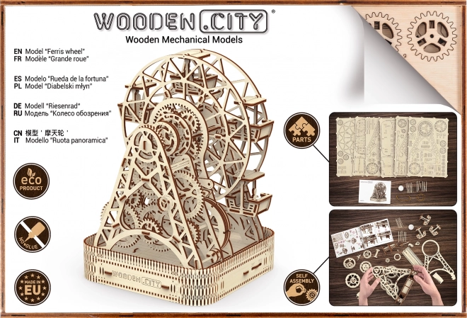 Entrate nel mondo dei parchi divertimento con la ruota panoramica di WOODEN CITY, che vanta dettagli incredibili e funzioni meccaniche. Questa ruota, alimentata da un motore a elastico, offre un'esperienza di movimento unica e vi sorprenderà con un vano nascosto.
