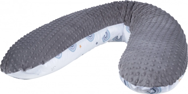 Cuscino per allattamento BUBABA Arcobaleno grigio è un aiuto ideale per ogni mamma, offrendo comfort e supporto durante la gravidanza e l'allattamento. È dotato di morbida imbottitura e fodera lavabile, rendendolo facile da mantenere e igienico.