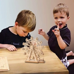 Immergiti nel mondo della creatività con questo puzzle 3D unico, che ti permette di creare un modello dettagliato della ruota panoramica. Ogni pezzo è tagliato al laser da compensato di tiglio da 2 mm, garantendo un montaggio facile e preciso. Goditi i benefici per il pensiero tecnico, l'immaginazione, l'attenzione ai dettagli e le abilità motorie.