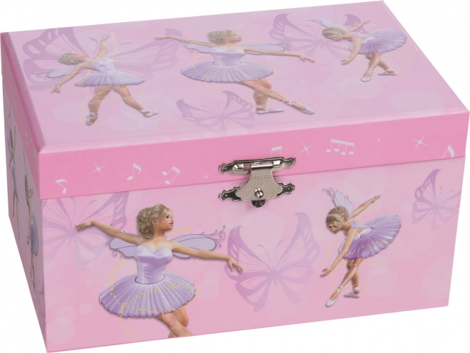 L'incantevole portagioie musicale con motivo di farfalle porta nella cameretta un'atmosfera poetica di balletto. All'apertura risuona la delicata melodia Il lago dei cigni e la piccola ballerina inizia a girare davanti al suo specchietto – il posto perfetto per custodire piccoli tesori e i primi gioielli.