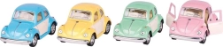 Grazie alle dimensioni compatte 10 × 5,5 × 5,5 cm, l’auto è il compagno di viaggio ideale. Basta tirarla indietro un paio di volte e il Maggiolino scatta in avanti – un divertimento semplice e amato che non stanca mai.
