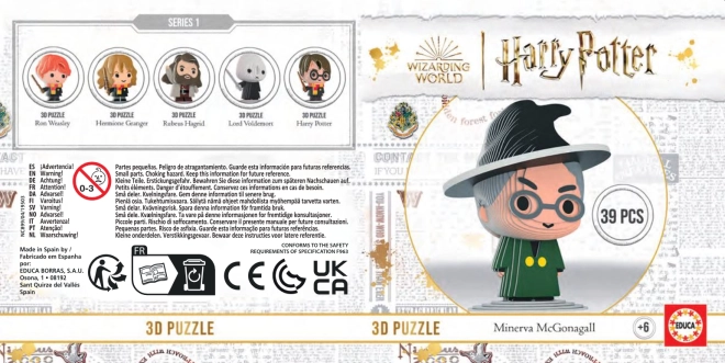 Assembla l'iconico personaggio della professoressa Minerva McGonagall dal mondo magico di HARRY POTTER. Questo puzzle 3D da collezione offre 39 pezzi, montaggio senza colla e strati di cartone colorati pretagliati per una creazione semplice e divertente. Inclusi anche 2 pezzi dell'esclusivo puzzle da 12 pezzi per i collezionisti dell'intera serie.