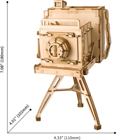 Scopri il fascino della storia con la nostra puzzle 3D in legno della macchina fotografica storica. Perfetto come decorazione e giocattolo educativo che stimola la creatività e la coordinazione.