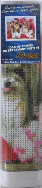 La pittura diamantata è un’attività creativa perfetta che aiuta a liberare la mente e allo stesso tempo a creare una decorazione unica per la casa. Il motivo dei cagnolini tra le rose conquisterà gli amanti degli animali e dei dettagli raffinati. Grazie alla legenda chiara e alla penna applicatrice, applicherai facilmente le gemme colorate sulla tela prestampata.