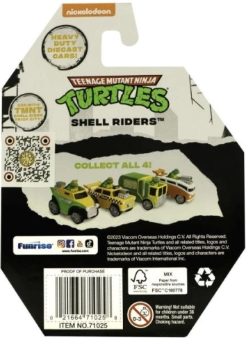 In ogni macchinina è presente il personaggio di una delle Tartarughe Ninja, che porta l'emozione della popolare serie televisiva nel gioco.