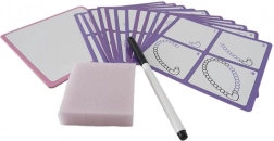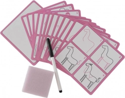 12 schede con immagini, pennarello cancellabile speciale, spugnetta