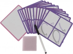 Un set divertente e pratico per piccoli artisti che favorisce destrezza, concentrazione e pazienza. Include 12 schede riutilizzabili, un pennarello cancellabile speciale e una spugnetta per cancellare facilmente, così il bambino può esercitarsi a disegnare più e più volte.