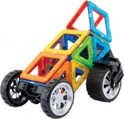 Divertiti con il Transform Wheel Bugy di Magformers. Il creativo set di costruzioni magnetiche permette di assemblare un gran numero di oggetti tridimensionali usando poligoni di plastica bidimensionali. Magformers allena la motricità fine, stimola la creatività, insegna ai bambini i colori e le forme geometriche di base. Le dimensioni dei pezzi e le forme accuratamente scelte garantiscono la massima sicurezza del giocattolo. Il materiale con cui è realizzato il set soddisfa i più severi criteri igienici e sanitari. I pezzi sono sufficientemente grandi, non possono essere ingeriti e sono praticamente indistruttibili. Contenuto della confezione: