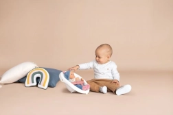 Il corpicino in morbido tessuto e il viso in plastica di qualità invitano a coccole, cura e sviluppo della fantasia e della motricità fine.
