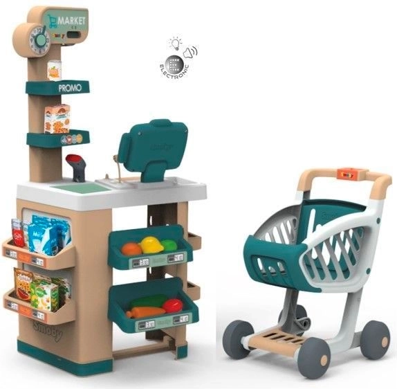 Regala al tuo bambino ore di divertimento con questo realistico supermercato per bambini. Questo set è dotato di una cassa elettronica che offre effetti sonori e luminosi, aumentando l'autenticità dell'acquisto. Con la funzione di calcolo integrata, i bambini possono giocare a fare i cassieri.