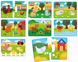Puzzle con motivi della fattoria che aiutano a sviluppare la motricità fine e le capacità cognitive dei bambini.