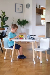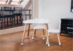 Questo set moderno in legno, nella combinazione senza tempo di bianco e legno naturale, si inserisce splendidamente in qualsiasi cameretta o stanza dei giochi. Le linee arrotondate e l’aspetto giocoso con orecchiette da orso stimolano la fantasia, mentre i materiali robusti assicurano lunga durata e facile pulizia.