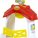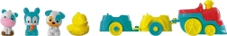 Questo set di trenini colorato e divertente trasforma il gioco dei bambini in avventure in fattoria. Quando il treno passa, la fattoria prende vita: le braccia delle gru si sollevano, il mulino inizia a girare e gli animali assumono il loro caratteristico ruolo sonoro. Chiudendo il cancello giallo, l'anatra inizia a 'nuotare' intorno allo stagno e la giostra gira. Un ottimo modo per stimolare il coordinamento tra mano e occhio e incoraggiare l'immaginazione dei bambini.