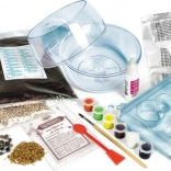 Contenuto della confezione: terrario in due parti, torba, ghiaia, semi, colori a tempera, colla, stampo per calchi in gesso, pennello, paletta, sacchetto di gesso - solfato di calcio (EINECS: 231-900-3), manuale illustrato con testi in CZ (SK, EN, SV, FI, NO, DK, PL, HU).