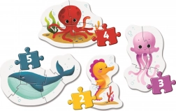 Scoprite l'affascinante mondo della vita marina con questo set di puzzle Clementoni pensato per i più piccoli. Il set include quattro puzzle con difficoltà significativamente diverse, garantendo divertimento e sviluppo del pensiero per il vostro bambino.