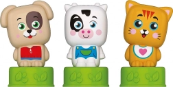 Tre personaggi – gattino, mucca e cagnolino – invogliano i bambini al gioco creativo, stimolano l’immaginazione e favoriscono le prime associazioni logiche.