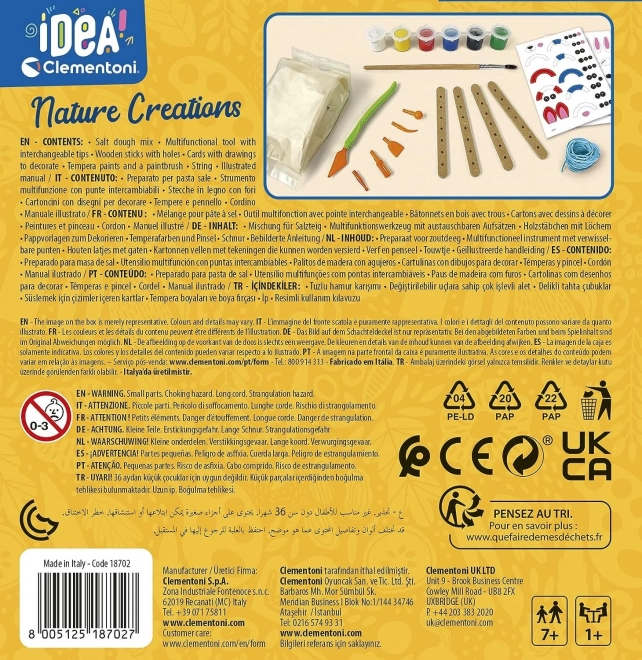 Questo set creativo CLEMENTONI IDEA Natura offre tutto ciò di cui i bambini hanno bisogno per creare bellissime decorazioni con la pasta di sale. Modellate, ritagliate, attorcigliate, dipingete e decorate: la fantasia non ha limiti. Le creazioni finite possono decorare la cameretta o diventare dolci regali.
