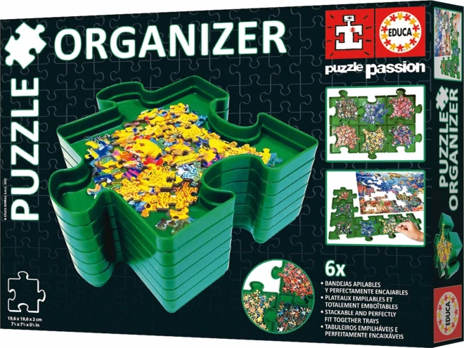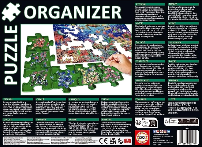 Rendi più agevole il montaggio del puzzle con l'organizer EDUCA. Grazie alle sei pratiche vaschette a forma di pezzo, puoi ordinare chiaramente i pezzi per colore, forma o motivo e accelerare così il lavoro di assemblaggio. I vassoi si incastrano perfettamente, mantenendo tutto al proprio posto.