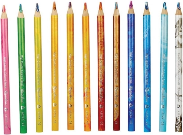 Le matite in legno ASTRA a sezione triangolare, formato jumbo, sono progettate per una presa confortevole e la massima creatività. La speciale mina multicolore produce a ogni tratto linee vivaci che cambiano gradualmente senza necessità di ruotare la matita. Perfette per disegnare acqua, erba, cielo o sabbia, dove risaltano i naturali passaggi di colore.