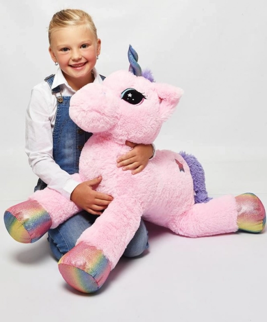 Incontra il nostro unicorno di peluche rosa di 85 cm, realizzato in peluche di qualità e morbido, che è il compagno ideale per ogni bambino.